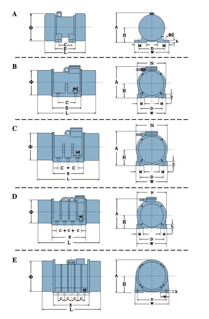 TZD振動(dòng)電機(jī)是在雙軸延伸的轉(zhuǎn)子軸兩端各安裝一組可調(diào)節(jié)偏心塊,利用偏心塊旋轉(zhuǎn)產(chǎn)生的離心力得到激振力。振動(dòng)電機(jī)的激振力大、能耗小、噪聲低、壽命長(zhǎng)。它使用于料倉(cāng)、料斗、溜槽的倉(cāng)壁振動(dòng),還是自同步直線(xiàn)振動(dòng)篩、振動(dòng)給料機(jī)、振動(dòng)輸送機(jī)等各種振動(dòng)機(jī)械的理想激振源,是電力、冶金、礦山、煤炭、建材、化工等行業(yè)的必備設(shè)備,有廣泛的應(yīng)用范圍。